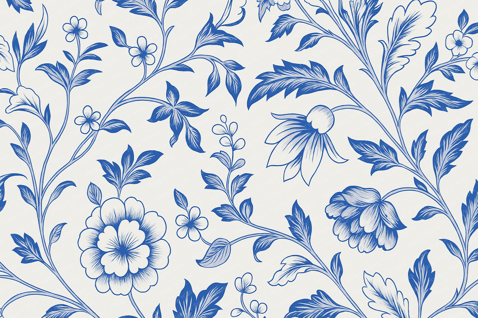 Embrace timeless charm with the Blue Vintage Botanicals Bedroom Wall Mural, designed in a rich blue-and-white palette reminiscent of porcelain patterns. Delicate vines, blossoms, and leaves flow across the mural, evoking elegance and tradition.