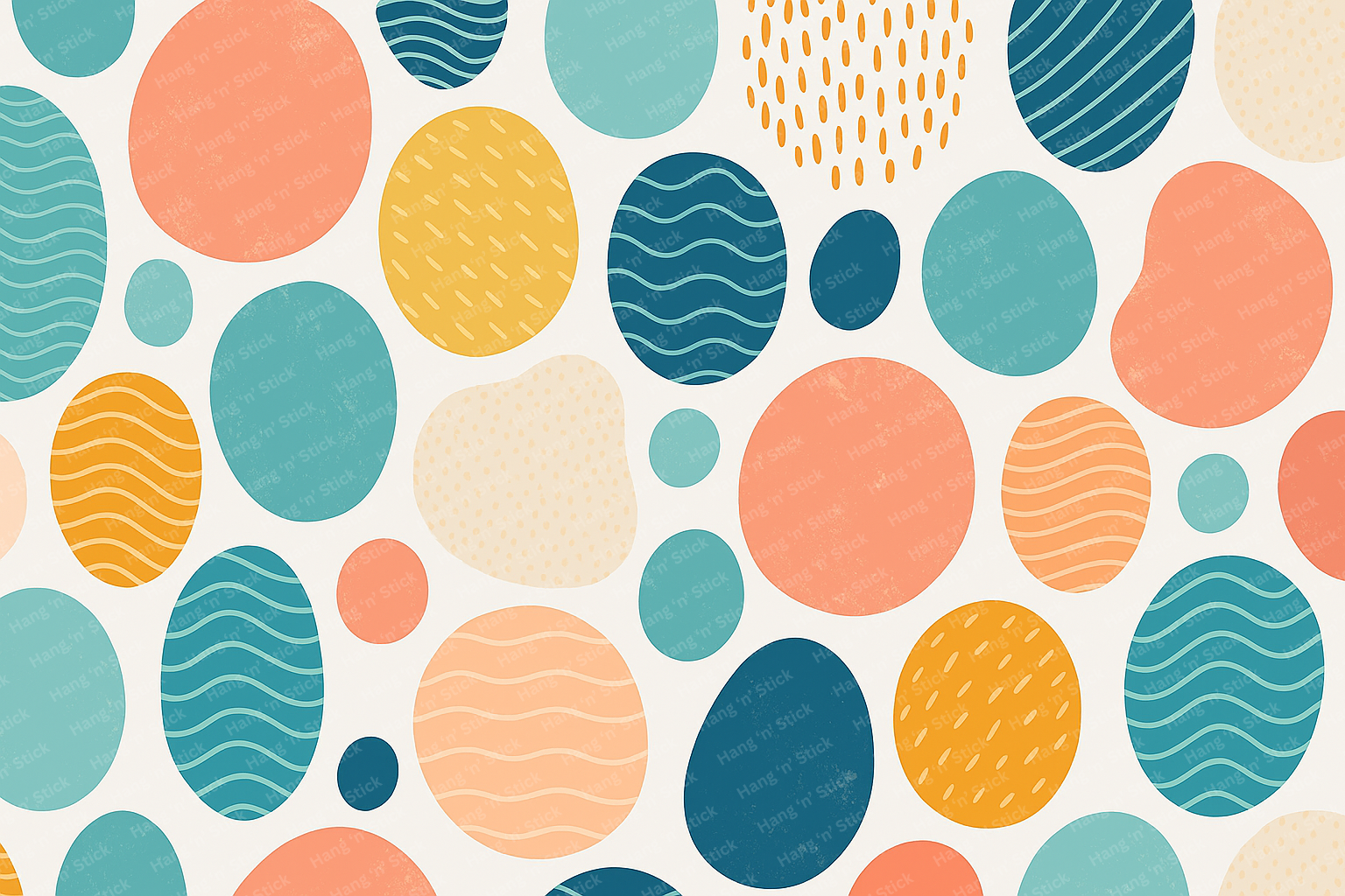 A cheerful mural of colorful dots and patterns in teal, mustard, and coral. Instantly downloadable, ideal for living rooms, playrooms, and creative interiors.